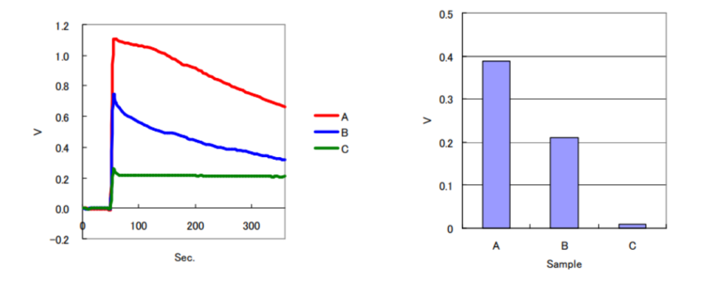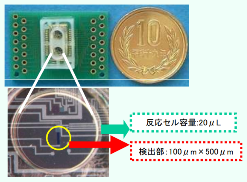 半導体を応用した高感度センサーであり、数マイクロリトルの極微量サンプルで測定ができます。